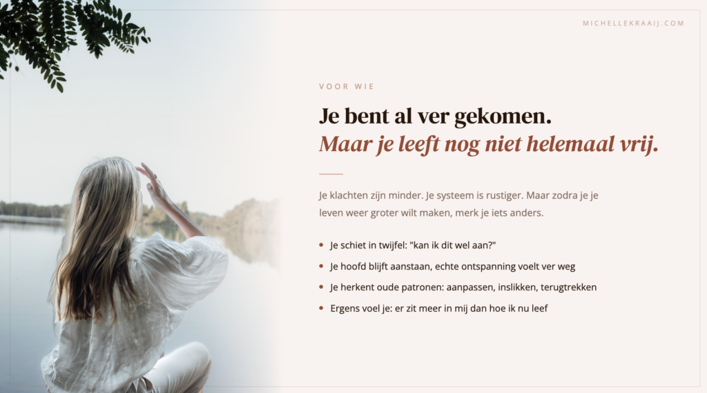 Stop met jezelf klein houden in je eigen leven. Dit is geen terugvalpreventie, maar een beweging vooruit naar het leven dat echt bij je past.
