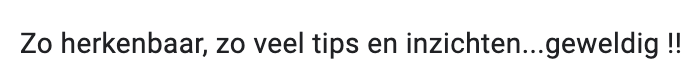 Michelle is een bevlogen spreekster, waardoor zij haar publiek goed kan motiveren. Zij weet op een heldere manier een brug te slaan tussen theorie en de praktijk. Haar lezing bevat veel praktische tips waar je als behandelaar meteen mee aan de slag kunt. Een echte aanrader!